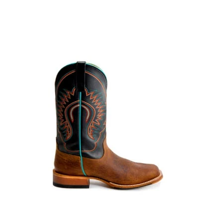 These adorable boots by Anderson Bean are perfect for your little cowboy! Featuring a smooth, peanut-brown leather vamp and black leather shaft with intricate, red, orange, white, and blue embroidery. Leather interior. Square toe.