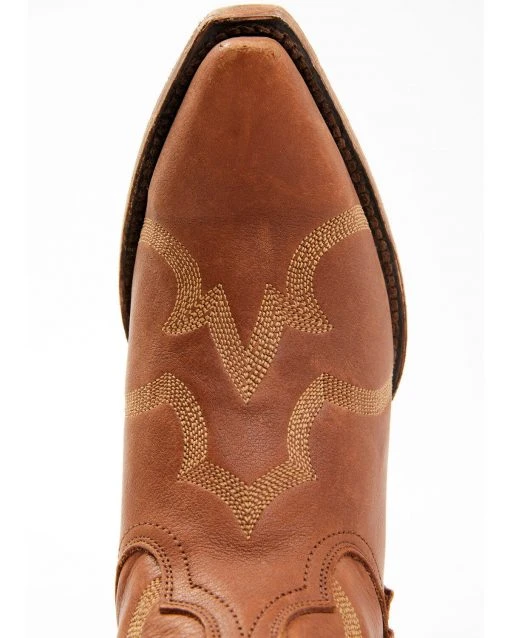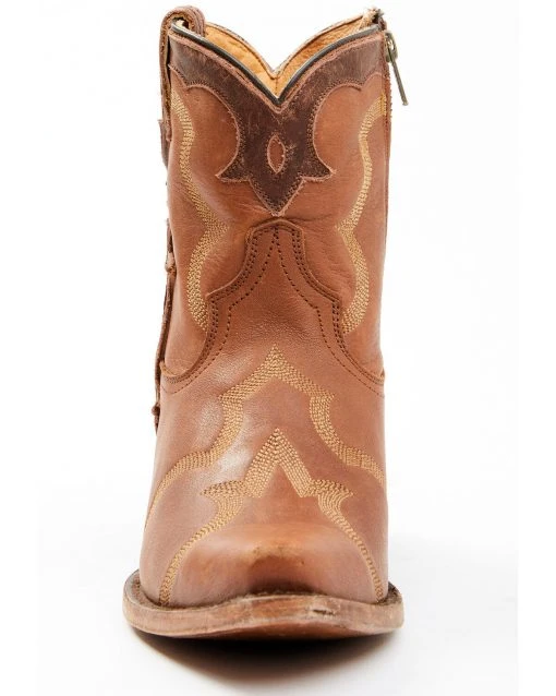 - Distressed leather embroidered cowboy bootie