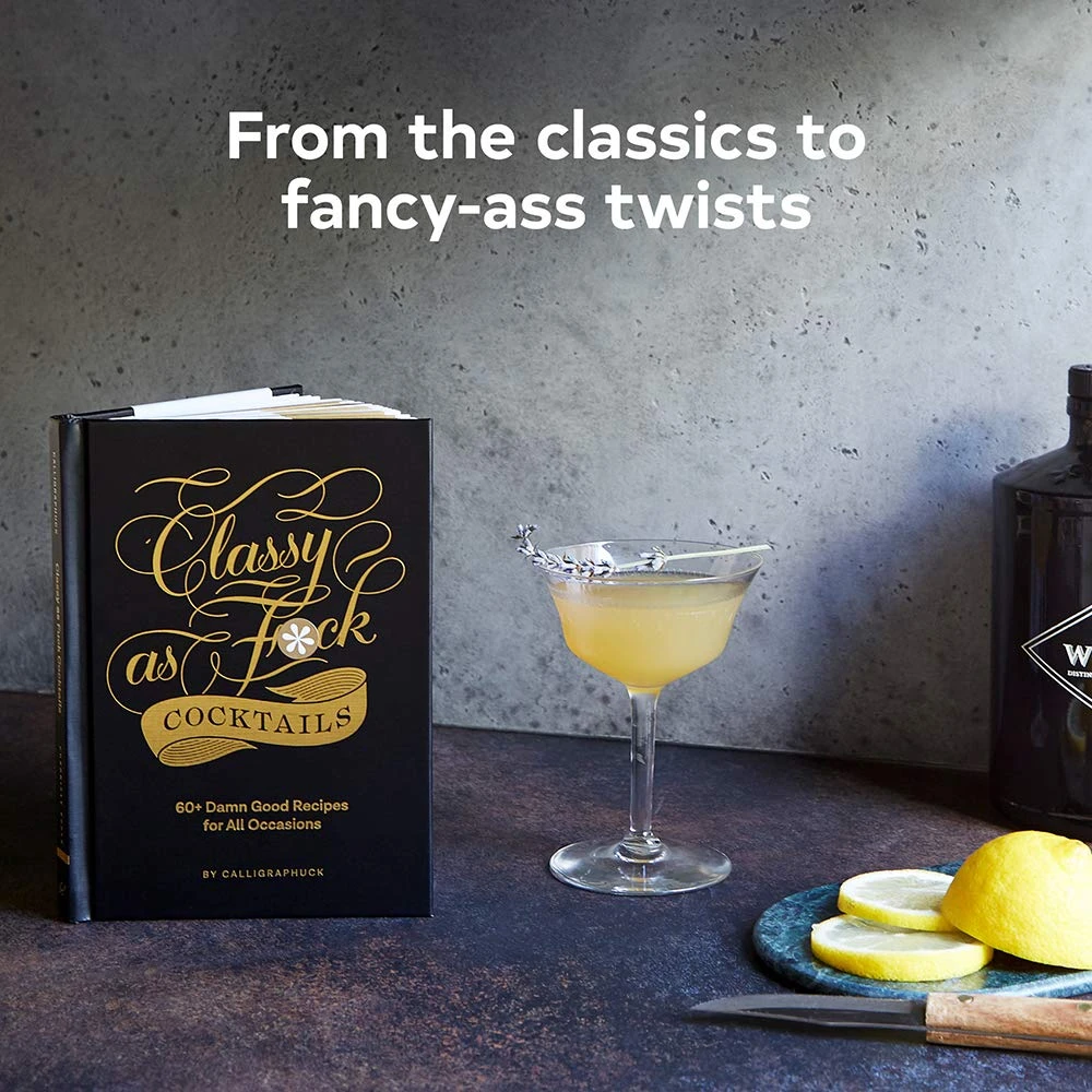 Classy as Fuck Cocktails is a cocktail book that celebrates the fine arts of drinking and swearing.