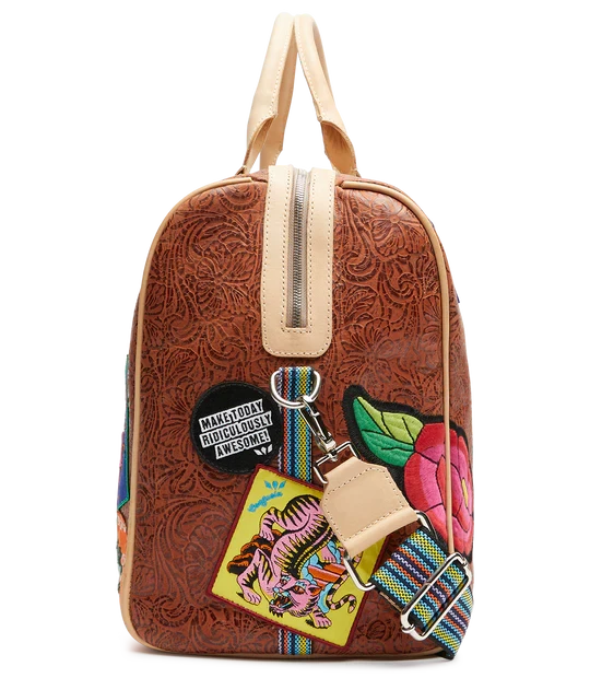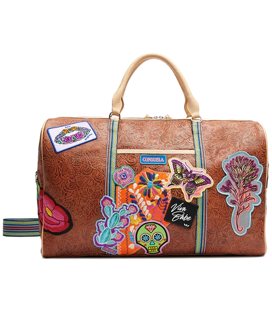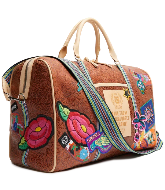 Our largest duffel style, the Weekender, is our go-to for weekends and day trips on the go. This duffel is roomy enough for all your essentials and features leather handles, an adjustable crossbody length webbing strap, two interior pockets, and two exterior pockets. If you’re looking for a TSA carry-on compatible bag, check out the Jetsetter or the Zipper Tote!