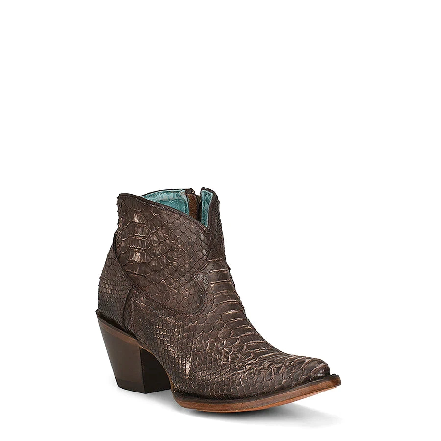 Check out this beautiful distressed chocolate full python bootie style A4325! The deep chocolate python is definitely a fashion statement and rocking any show!