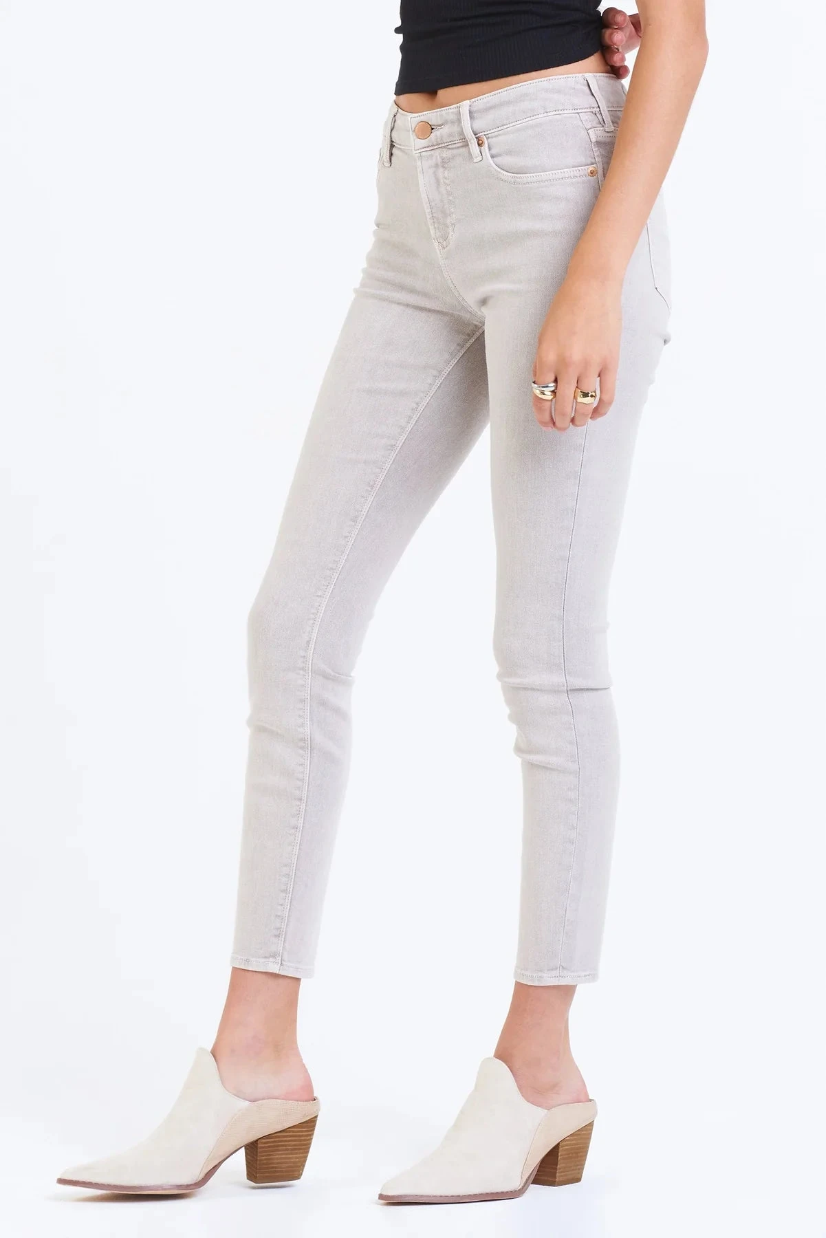 High rise ankle skinny jeans. It’s the stunning fit that sits slightly lower on the waist and fitted skinny in the hips through the leg. Ankle inseam on stretch denim with designer color palettes, washed and brushed for softness.