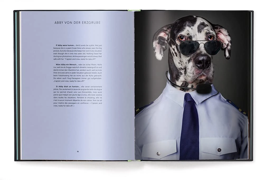 Dogs are only human, aren’t they? This irresistible dog book by Sandra Müller combines refined canine portrait photography with a fun and loving look at our four-legged friends outfitted in different costumes to uncannily reveal their humanlike personalities — whether a giant schnauzer or pug, pedigree dog or characterful cross-breed. For every dog portrait, there is a humorous accompanying text about their chosen outfit. Pug Gisbert, for example, would certainly be a medic in the human world: you only need to call out the vet’s name “Dr. Uwe” and Gisbert is already crazy with excitement. Text in English, French, and German.