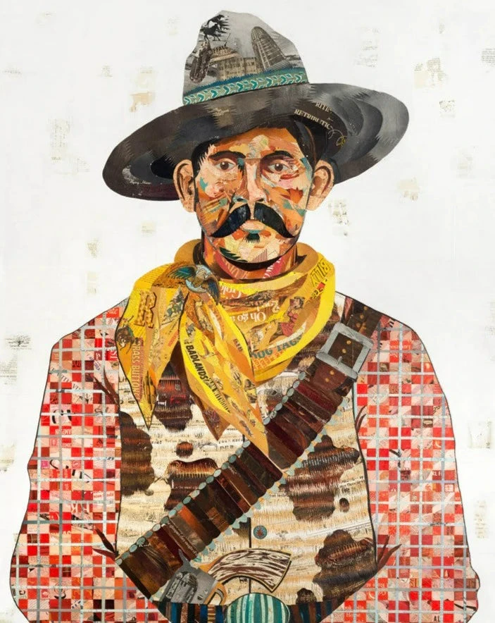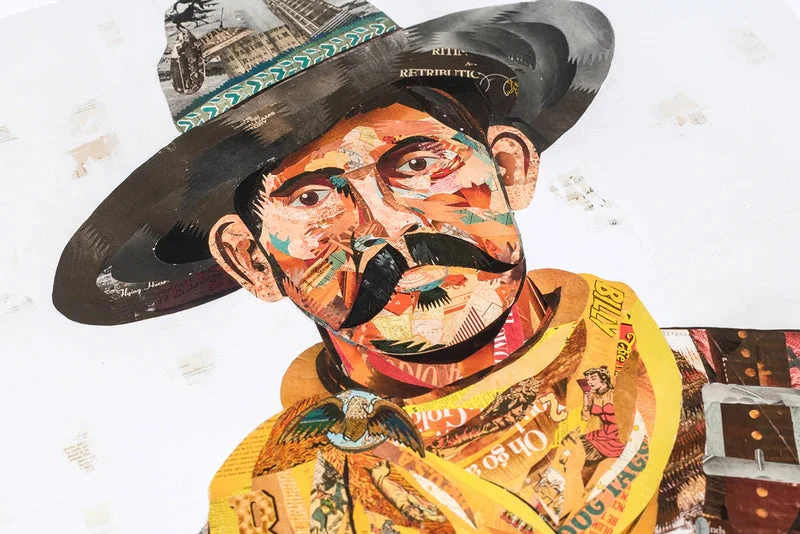 Fine art print of classic American cowboy wearing a checkered shirt and cowhide vest. Contemporary cowboy print for western art collectors and wild west fans.