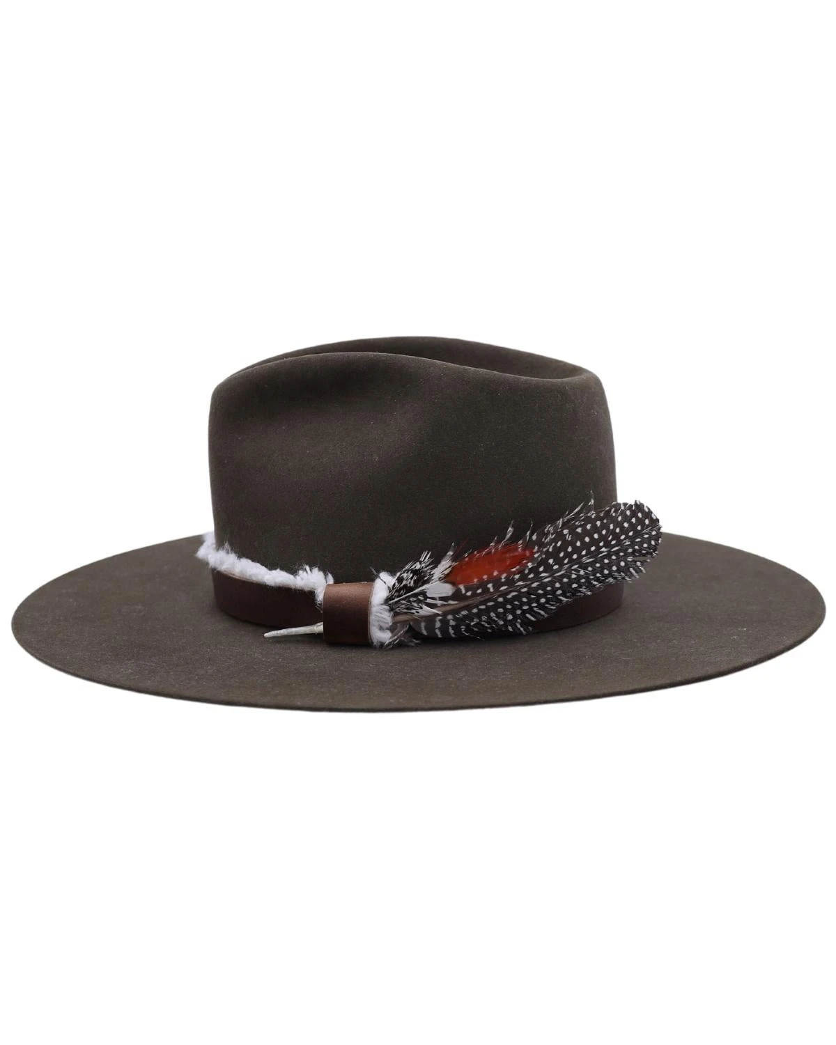 This spectacular felt hat by Greeley Hat Works was made exclusively for Maverick Fine Western Wear! Featuring a classic style made of beautiful sage green felt adorned with a brown leather hat band, textured white accents, and gorgeous bird feathers. As versatile as it is stunning, the Reileigh Hat is sure to become an invaluable piece in your hat collection.