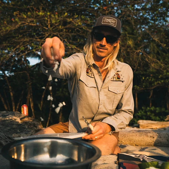 These hats are not too high and not too low, making them the perfect toppers for all your good days. They are fully adjustable with a glare-cutting navy under brim, Howler Monkey icon tag on the back left and Howler artwork on the front.