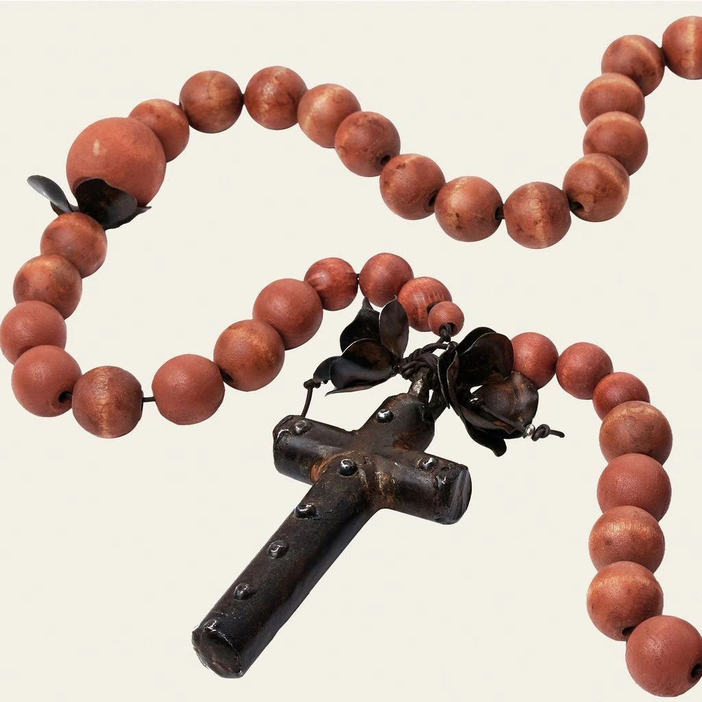 Blessings inspired by red earth and adobe . . . wax cast and beaded cross cradled in roses . . . adorn or bless .Â