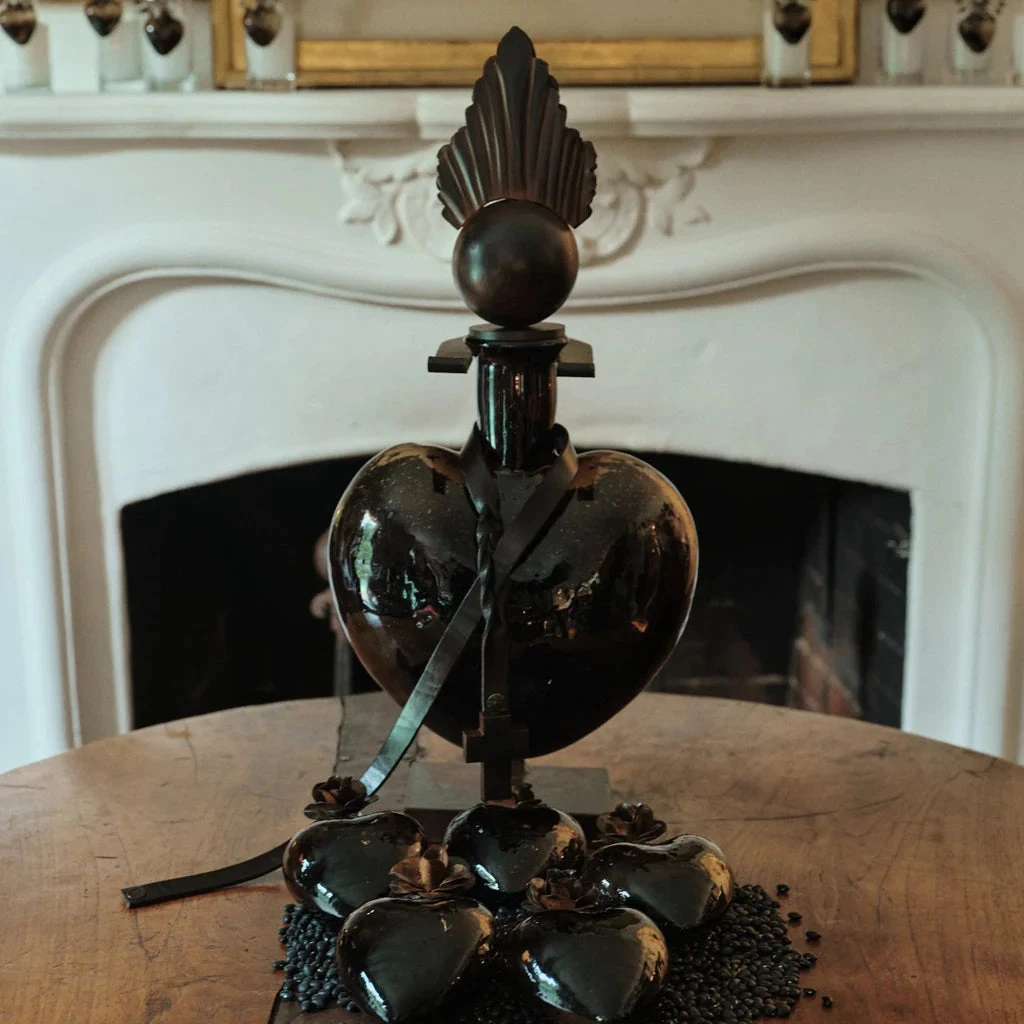 Signed limited edition piece encapsulating the mastery of Barboglio’s artisans, from the glass blowers to the foundry men and forgers . . . A larger than life, rich chocolate heart of mouth blown glass topped with an aura that transcends . . . a piece that captures the passion, the prominence, the provocation of Barboglio . . .Â