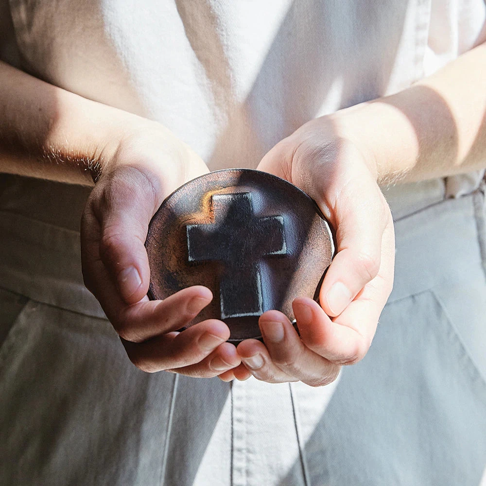 Small circular leather-lined houseblessing box to hold your small treasures . . . on a bedside table, desktop, nursery . . .Â