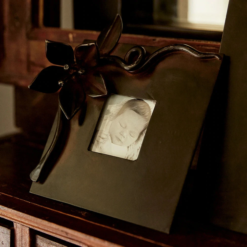 Organic and graceful passion flower vine on a 3X3″ frame for tabletop display . . .