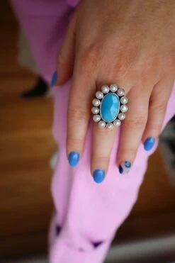 Peyote Bird Sleeping Beauty Faceted With Pearls Surrounding Ring- Size 7.5