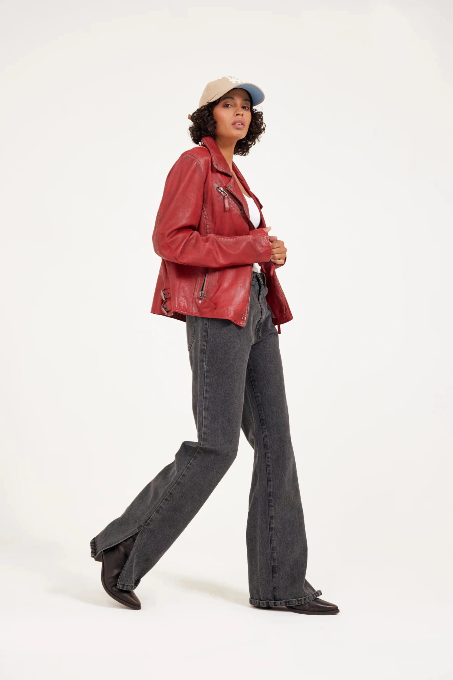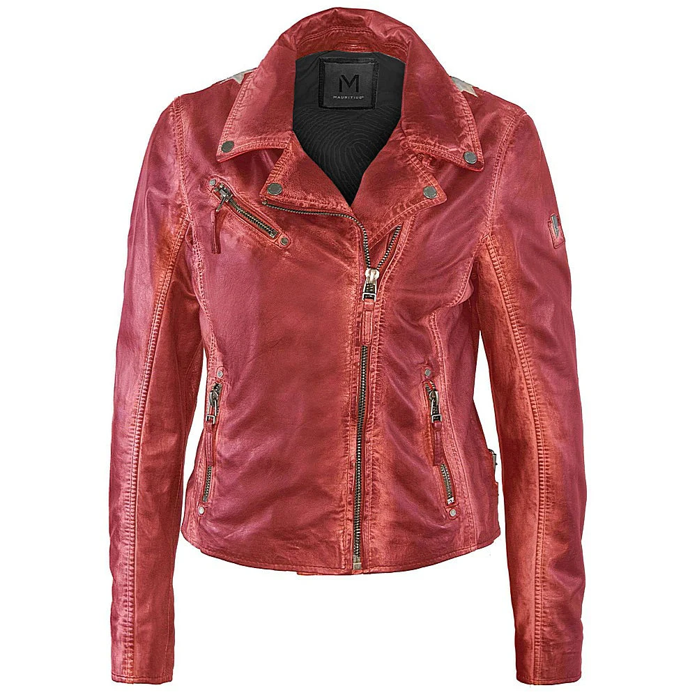 Ahhh… the famous star jacket – highlighted in many cameos on tv and movies, this style announces she has arrived. Made of 100% vegetable tanned and ethically produced lambskin leather, this jacket will catch the eye of many admirers. The seams are gently polished to ensure a distressed effect, the inside of the pockets, inside of the cuff zips and under the collar give a fabulous contrast pop of color!