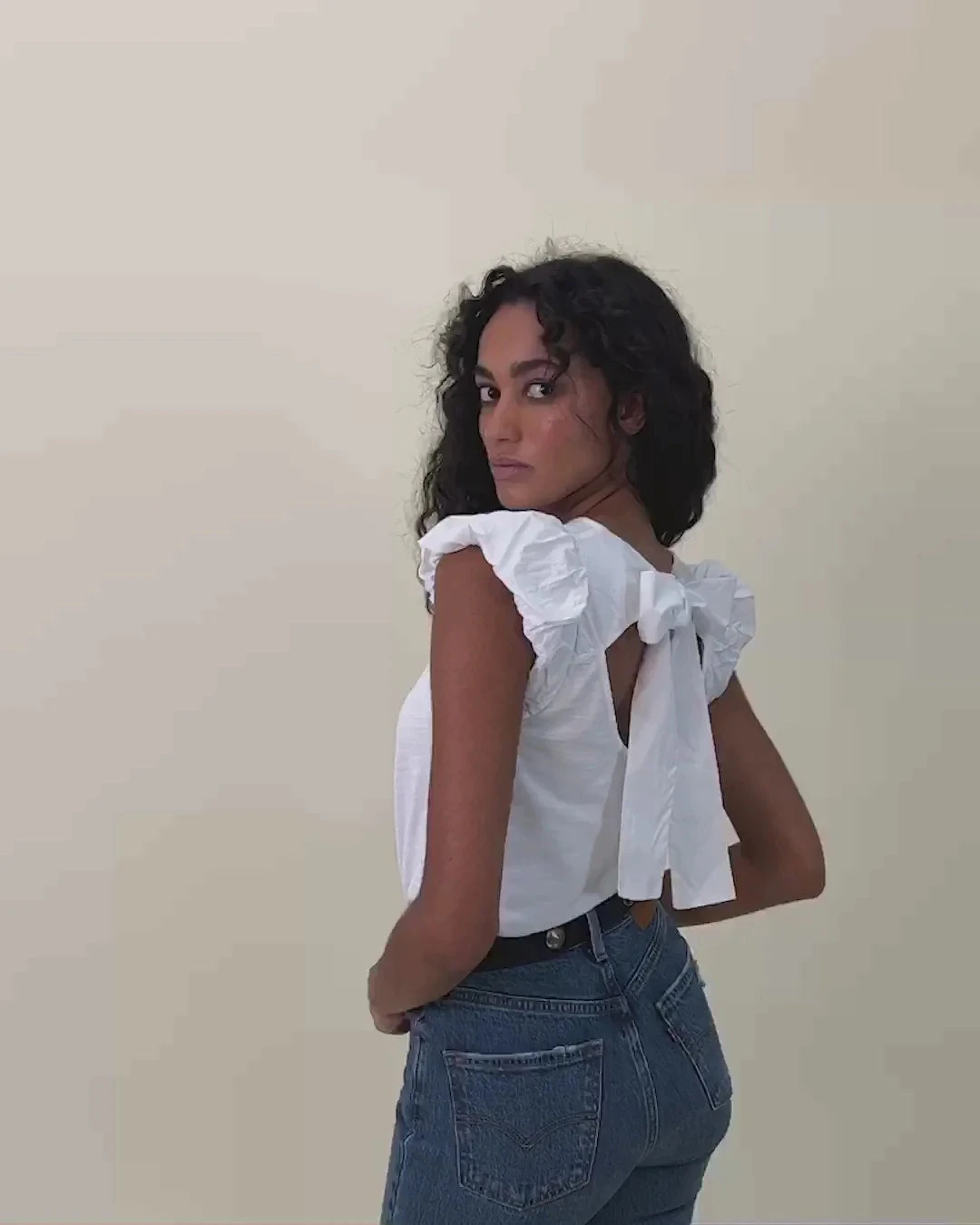 It’s no secret – we love a twist on the classics. From the chic poplin bubble sleeves and tie to the feminine tie back cutout, it’s your favorite crew neck, reimagined. (This one comes in Optic White.)