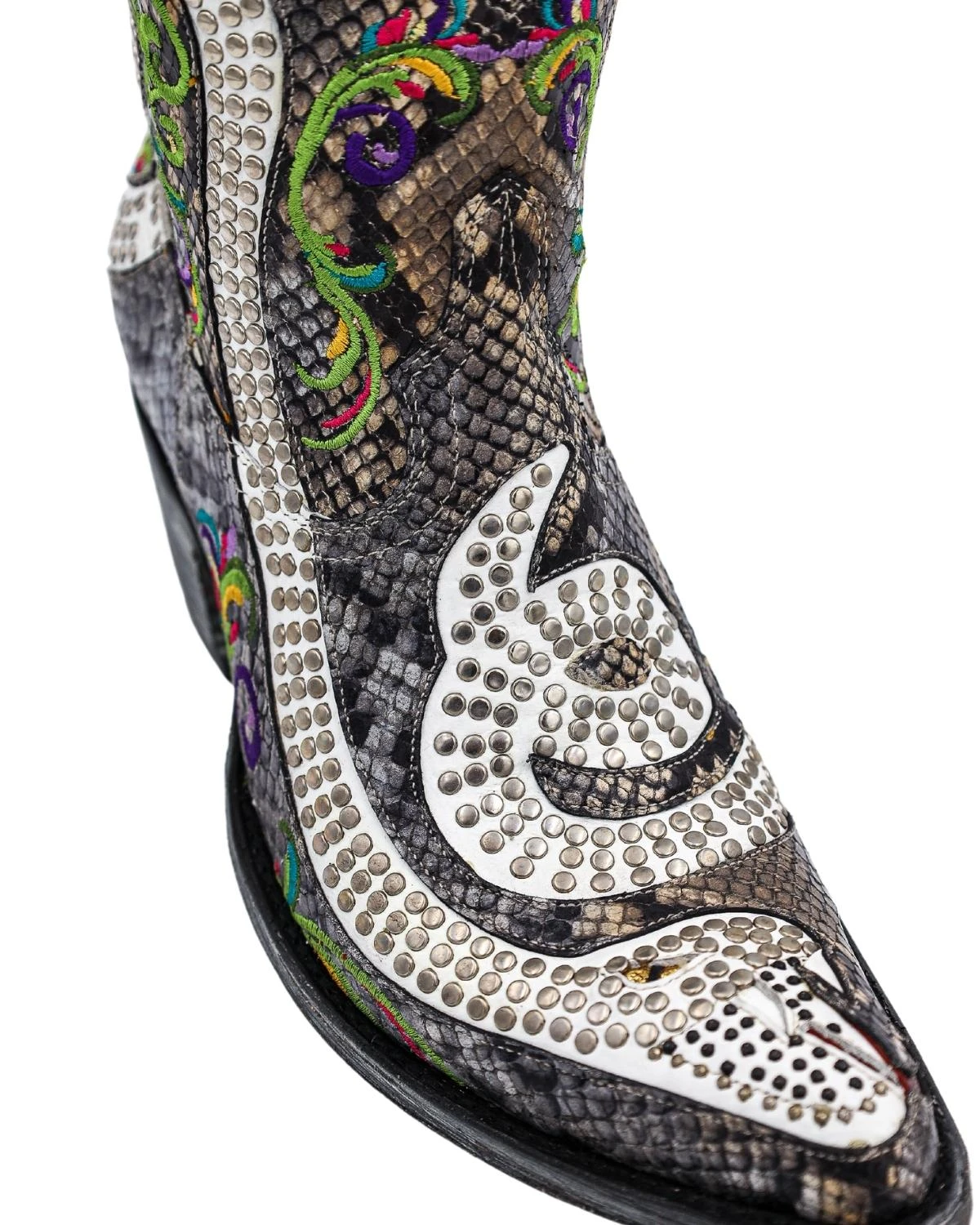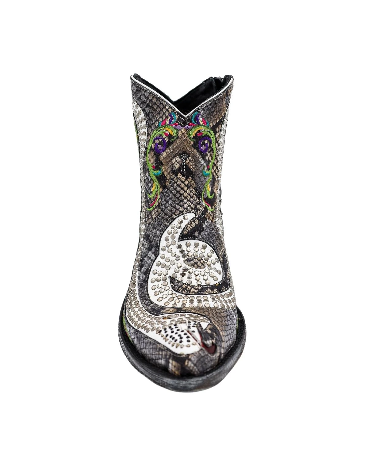 These Maverick Exclusive booties by Old Gringo Boots are spunky and tough! Add some pep in your step with these vibrant snake silhouette pattern booties that can only be found at your favorite store in the Stockyards!Â