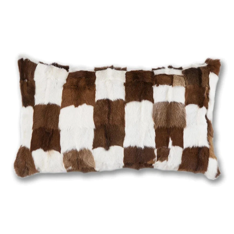 This patched pillow is crafted from genuine goat hide and pieced together to create a unique look. Imported.