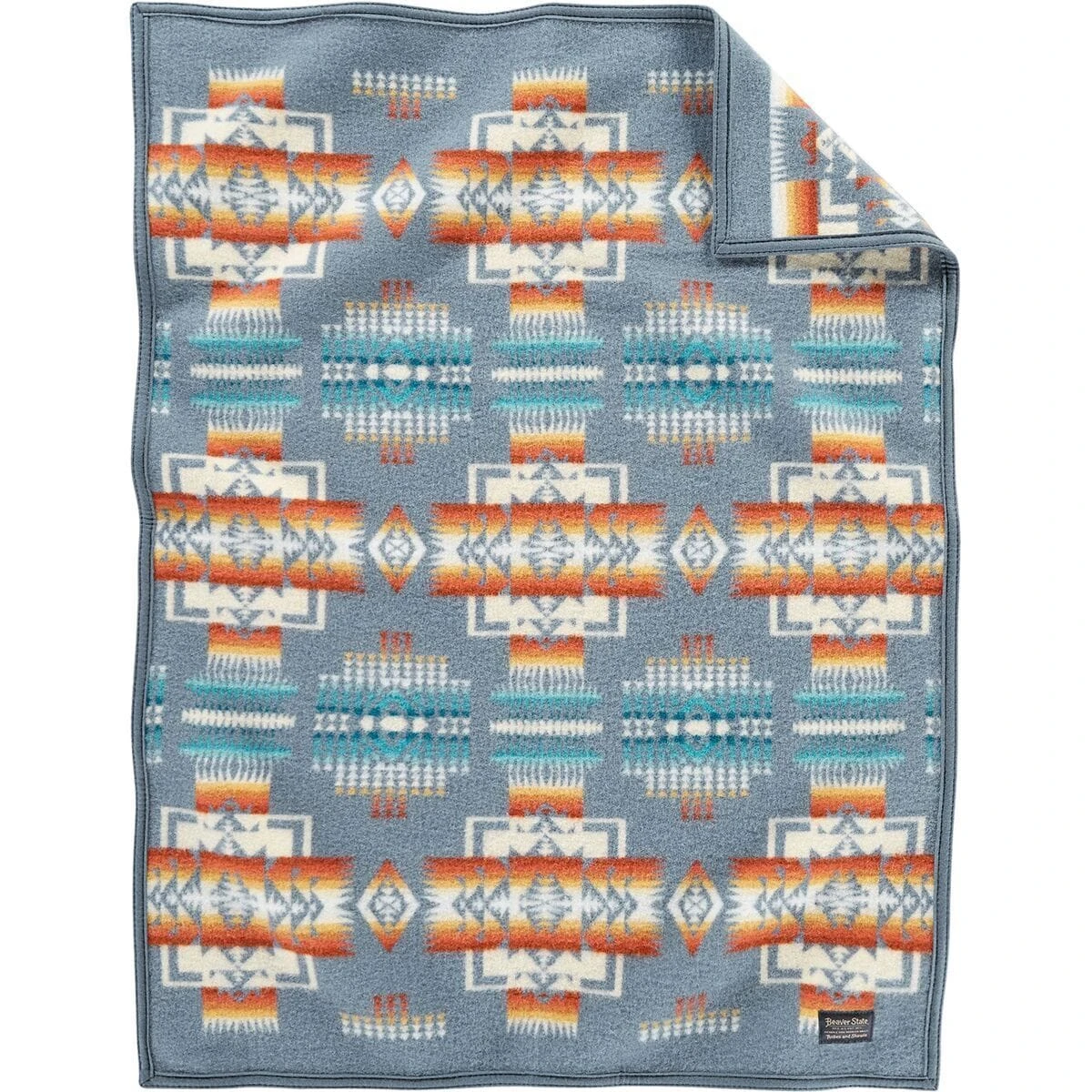 Made in America of our softest pure virgin wool, this Chief Joseph Slate child-sized blanket is a treasured gift (and customizable with embroidery for a personal touch). Give the next generation an heirloom in our longest ongoing blanket design, woven in our Pacific Northwest mills for nearly 100 years. 32″ x 44″ Napped; fabric is combed for a softer, thicker feel Felt binding Pure virgin wool/cotton Fabric woven in our American mills Dry clean Made in USA