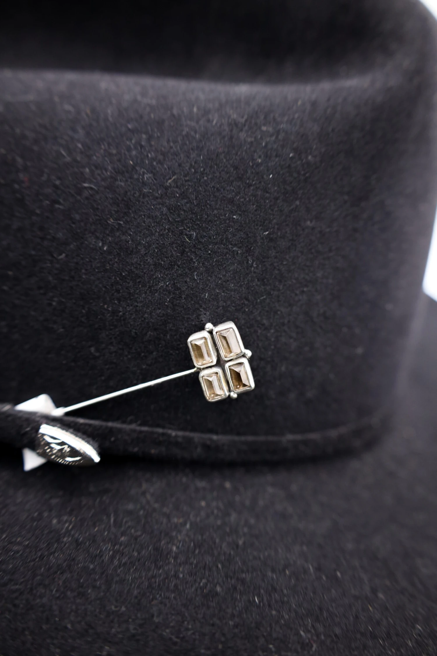 Make a statement and customize your cowboy hat with this one-of-a-kind Peyote Bird Four Smoky Gems Stick Hat Pin! Ideal for adding a touch of glamour and sophistication, this pin is sure to turn heads with its shimmery, smoky gems. Show off your unique style and get noticed today!