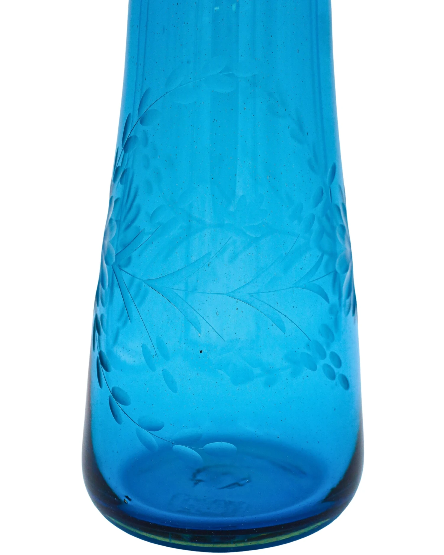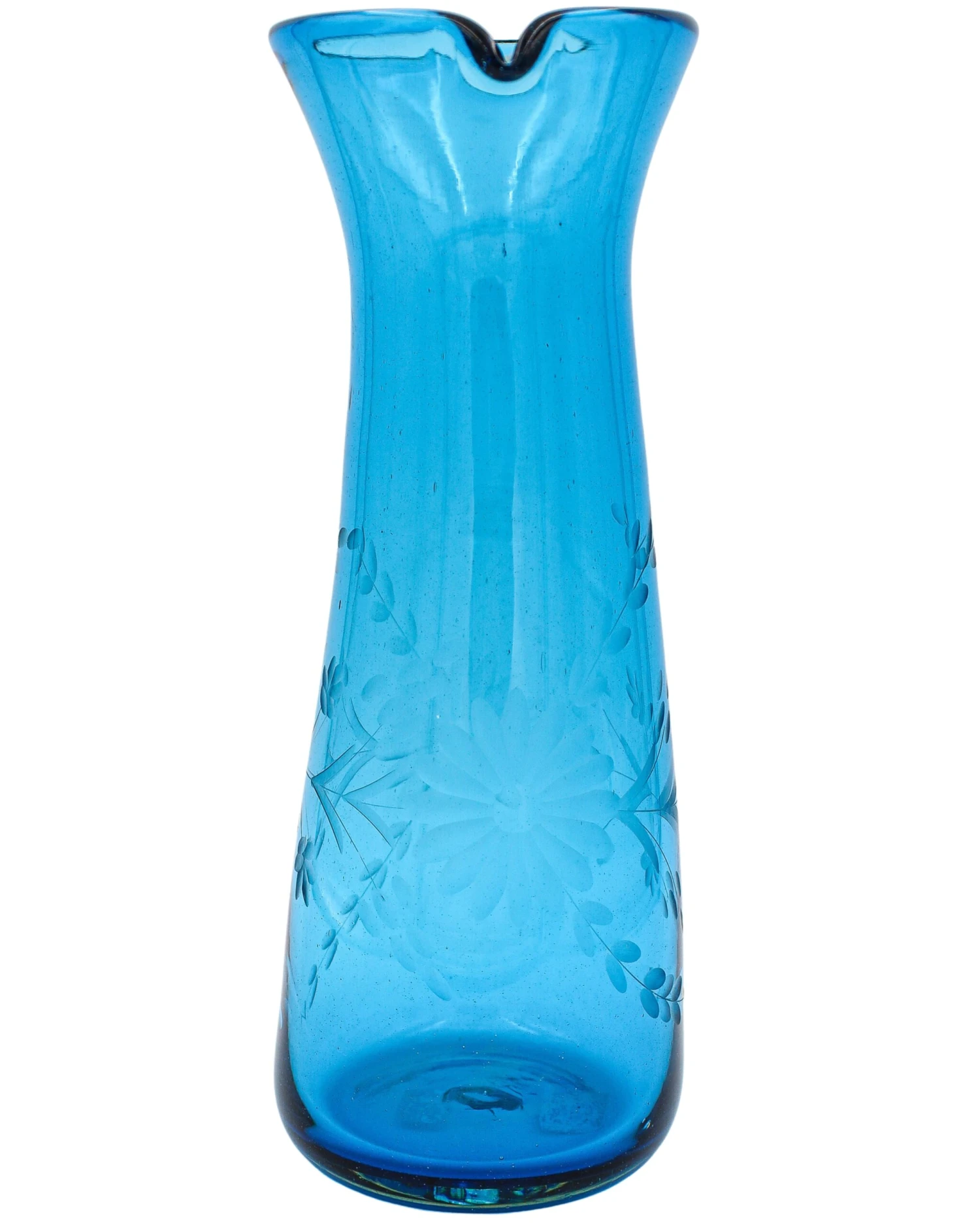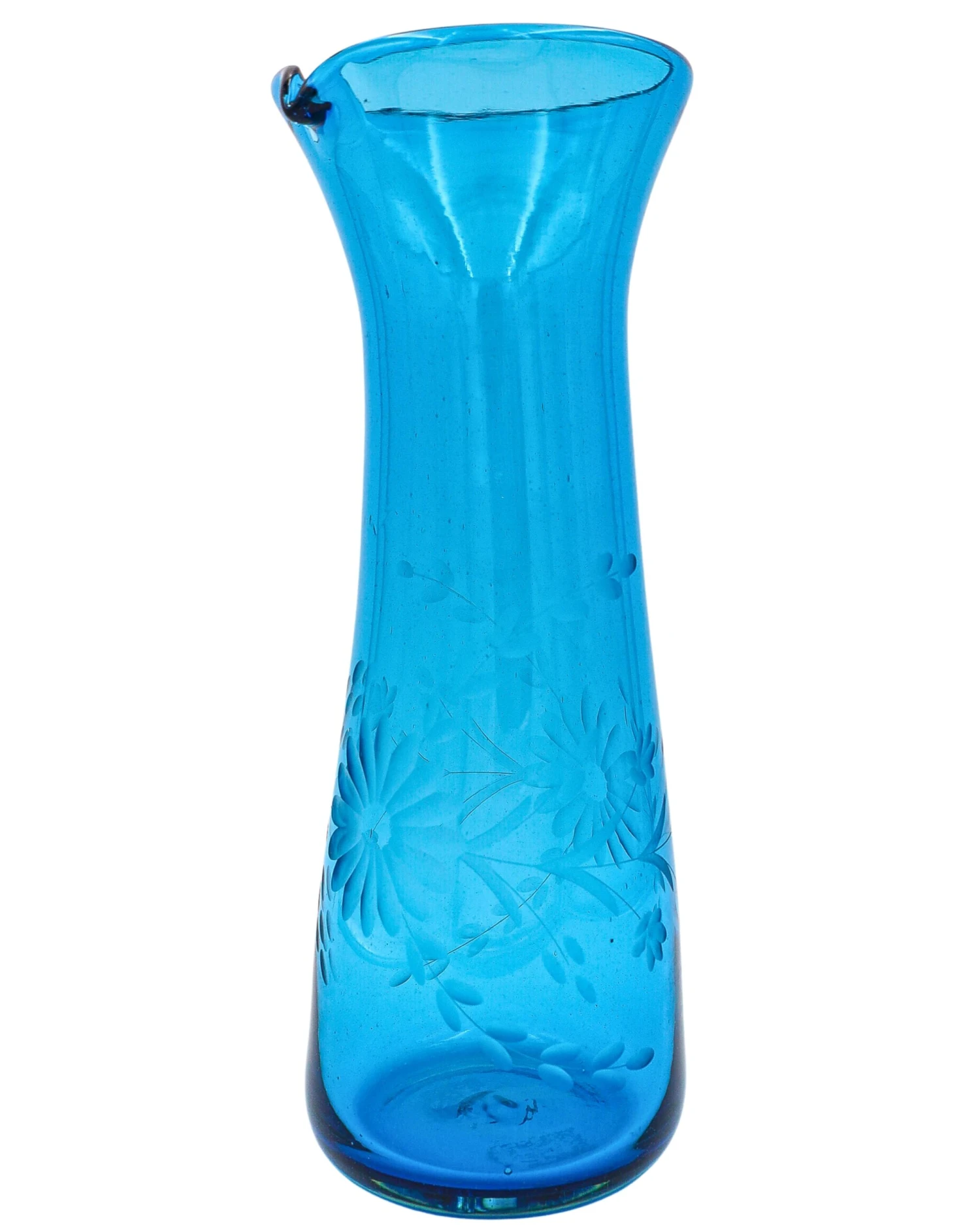 The Condessa Carafe in Aqua, is beautifully hand-blown by talented craftsmen in Mexico from recycled glass. Each glass is etched by skilled maestros who engrave the design directly onto the glass using only a grinding stone and an experienced eye. The result is truly a work of art that brings old-world elegance to any table or social setting.