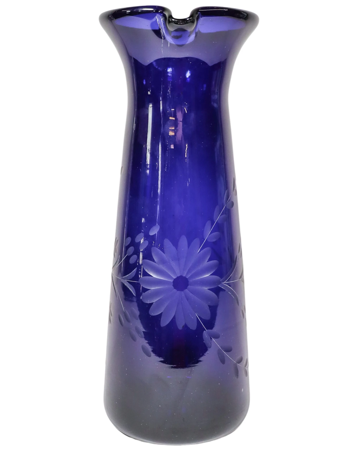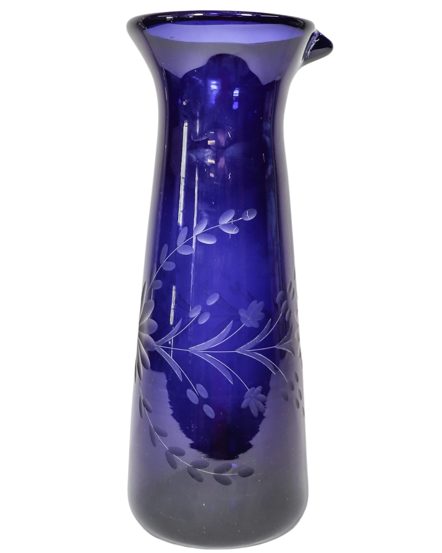 The Condessa Carafe in Dark Blue, is beautifully hand-blown by talented craftsmen in Mexico from recycled glass. Each glass is etched by skilled maestros who engrave the design directly onto the glass using only a grinding stone and an experienced eye. The result is truly a work of art that brings old-world elegance to any table or social setting.
