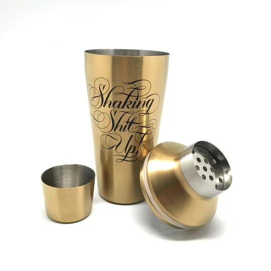 Shake things up with this fancy-ass cocktail shaker! Featuring elegantly rendered expletives and calligraphic flourishes, this essential home bar tool is perfect for mixing drinks in style!