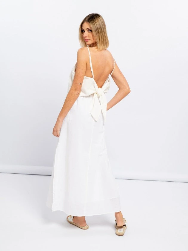 Flowing Long Skirt in Linen Blend Fabric. Carrying waist with drawstrings.
