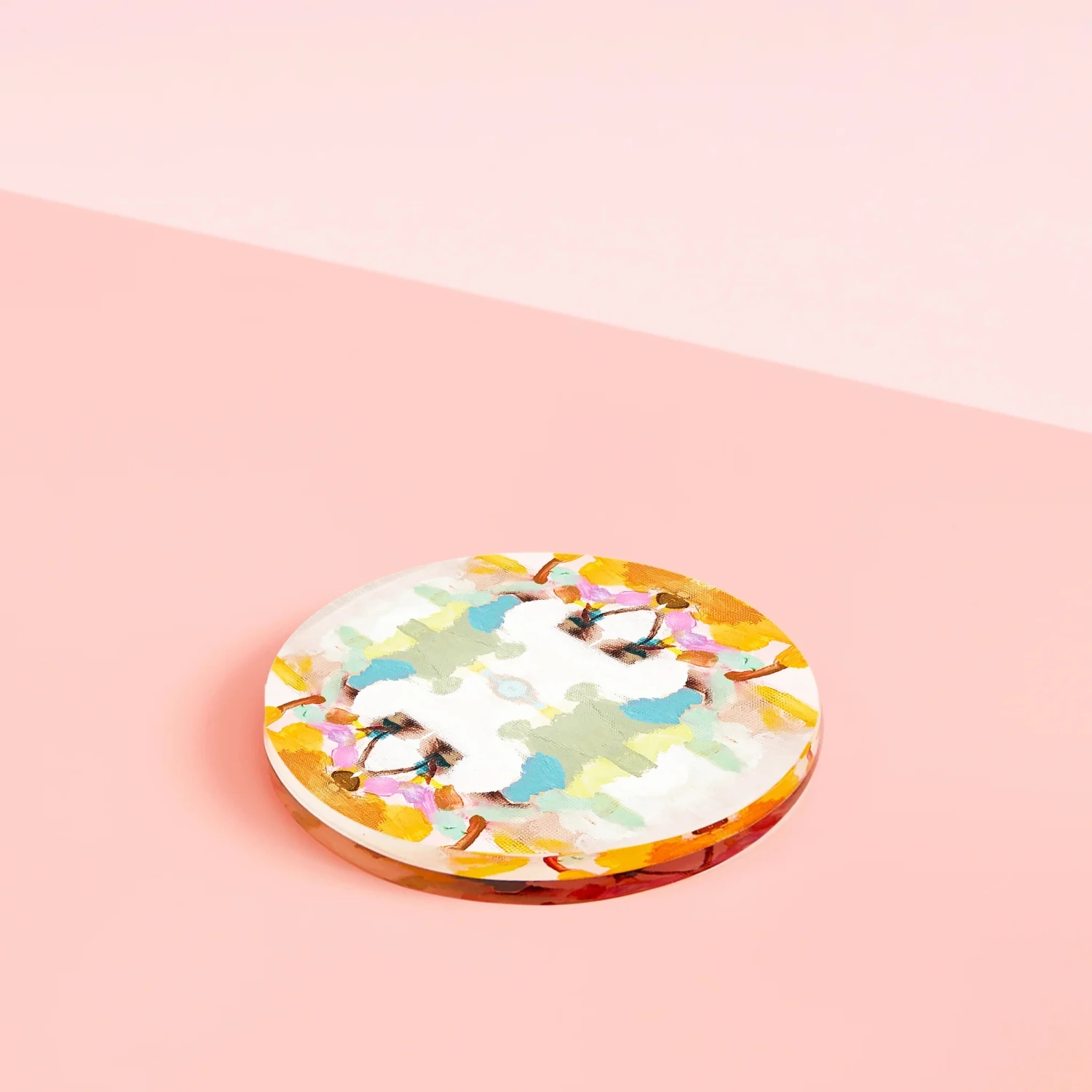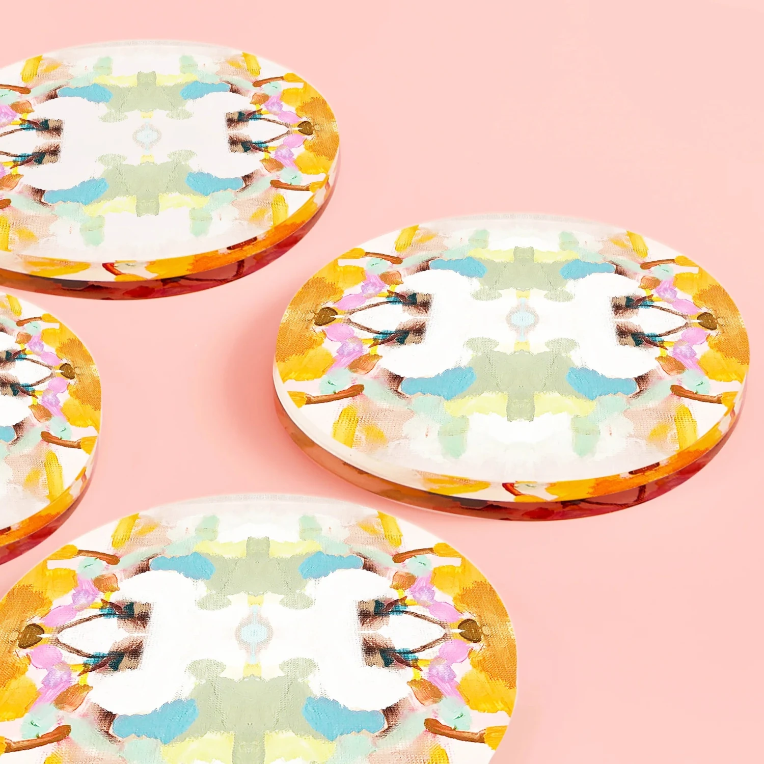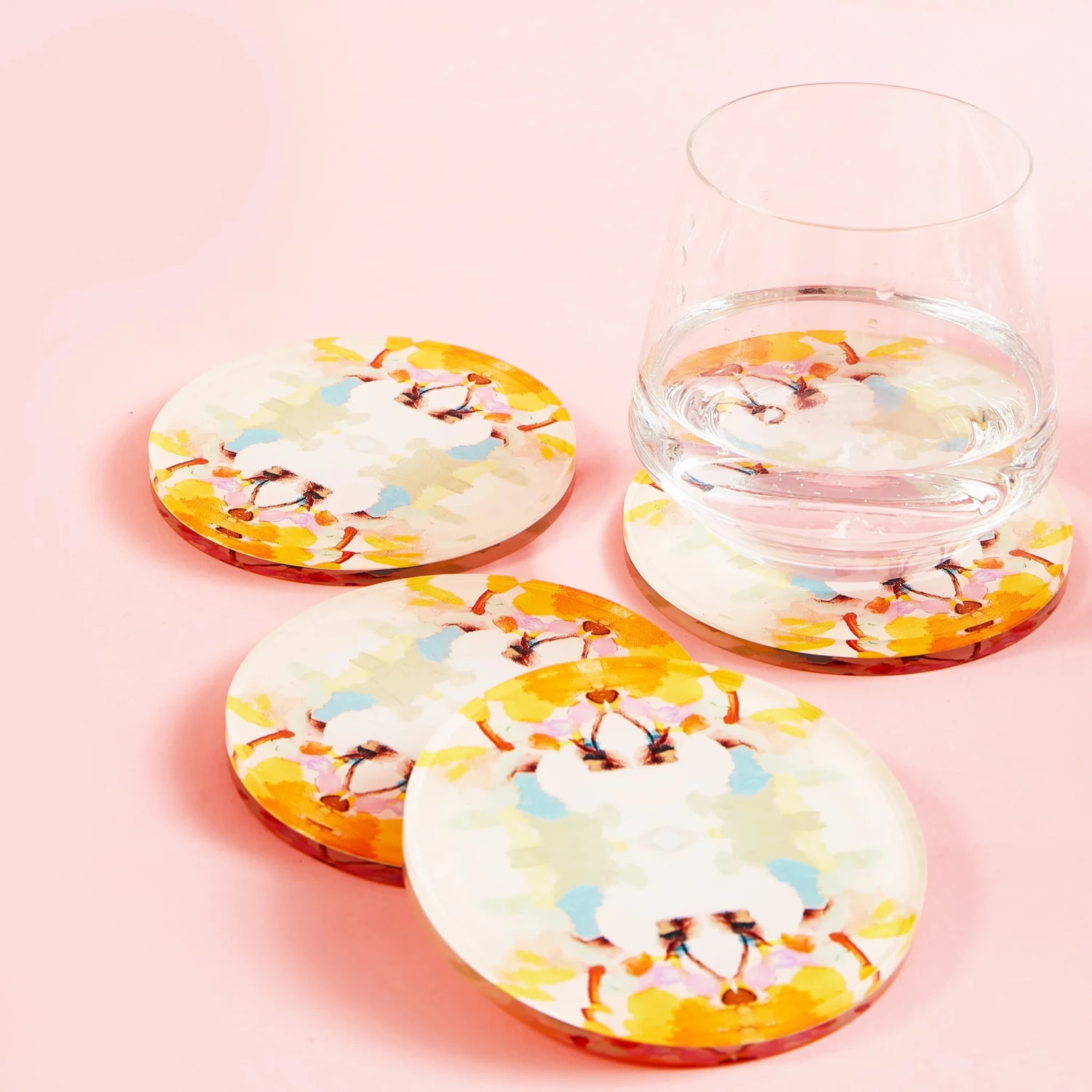 These acrylic coasters protect your tables and counters in style while adding a pop of color to any room. The bold design is the perfect cheers to anyone who knows how to have a good time. The original Laura Park Designs x Tart By Taylor Collaboration artwork is sandwiched between two thick layers of acrylic, making this colorful piece of art visible from both the front and the back.