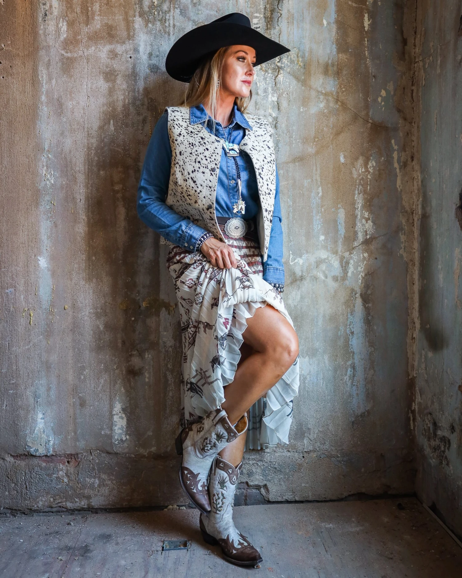 - A-Line, Multi-Blanket Print Skirt with Side Zipper and PleatsÂ