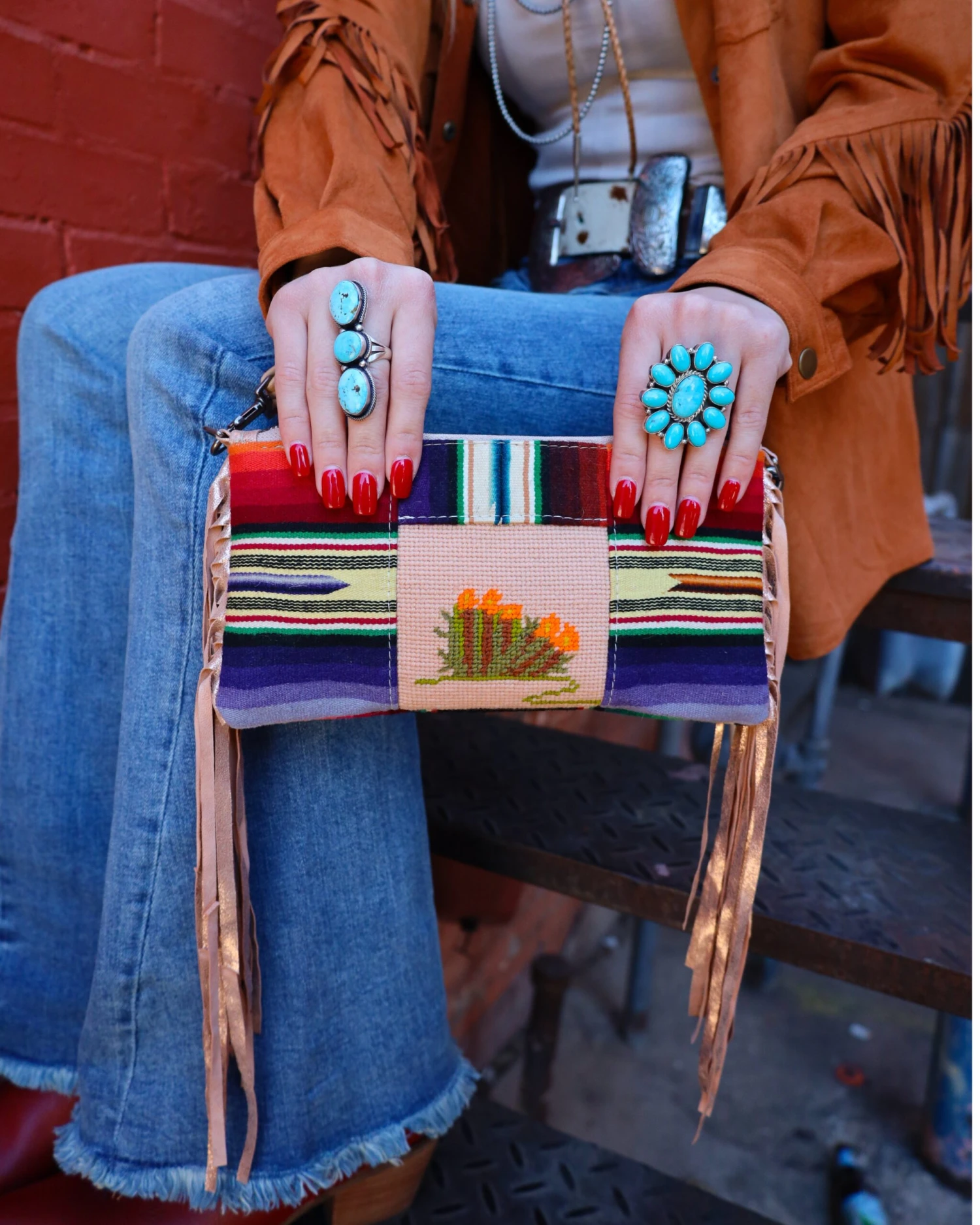 Totem Small With Fringe Cactus Crossbody
